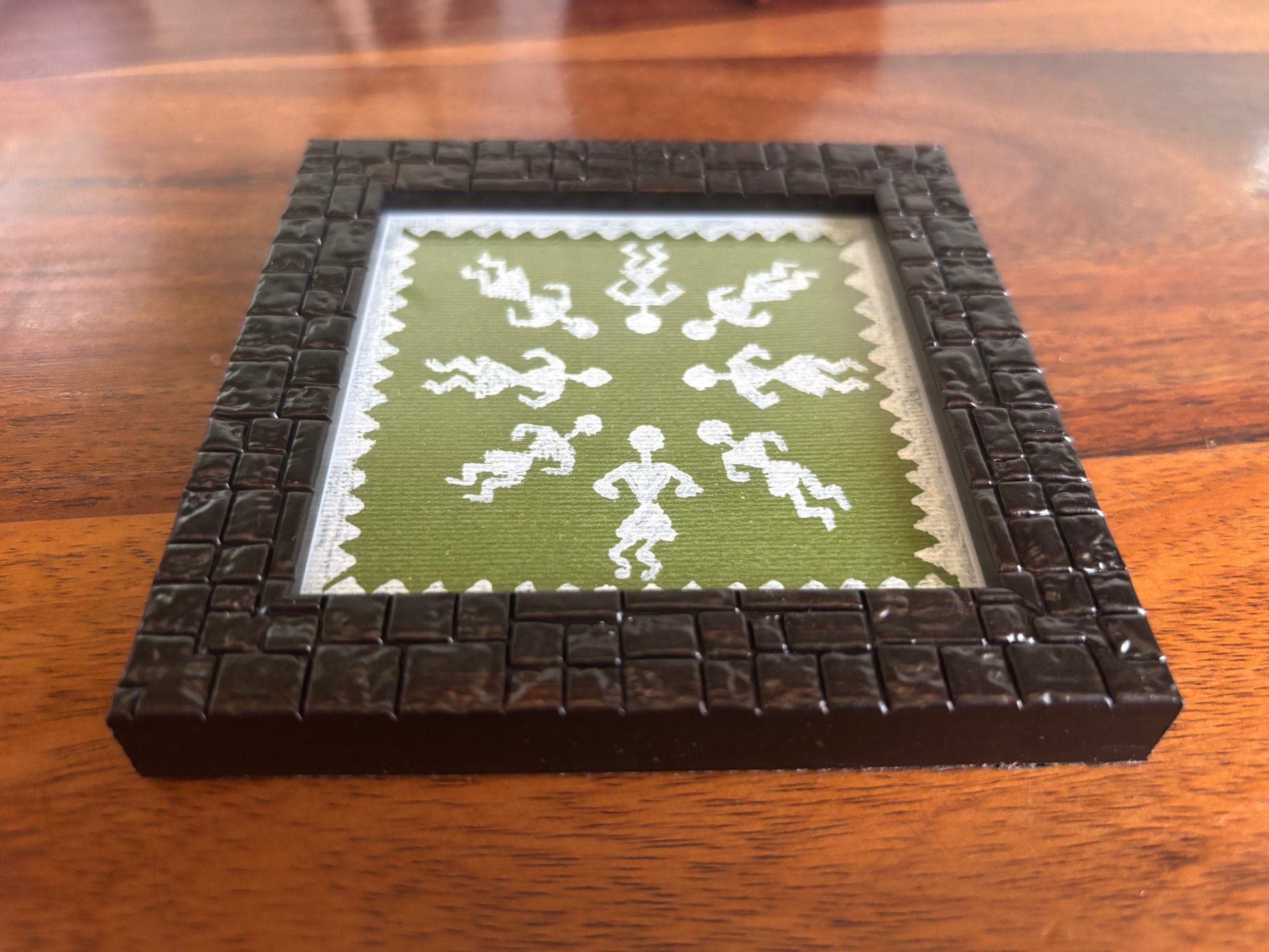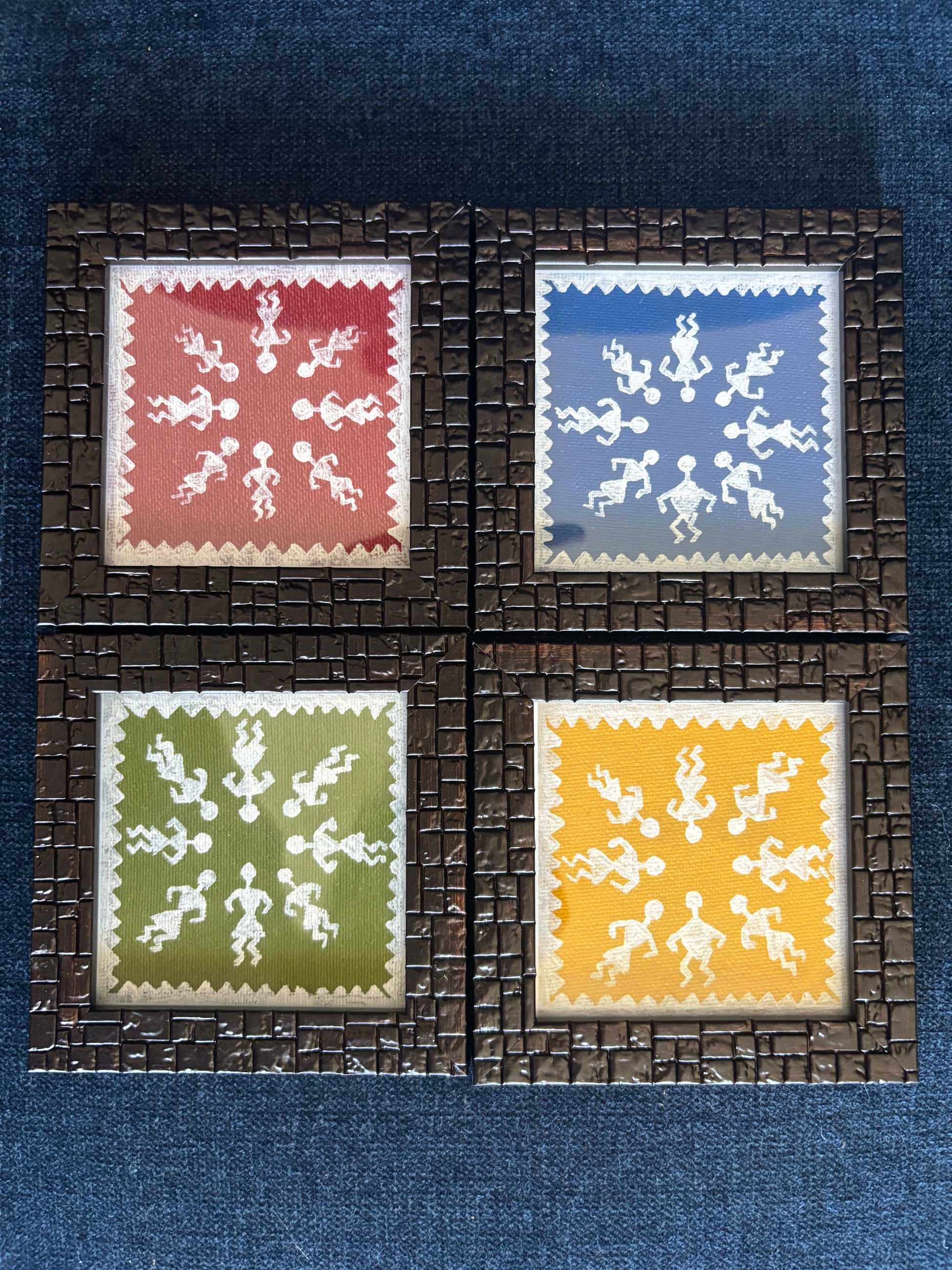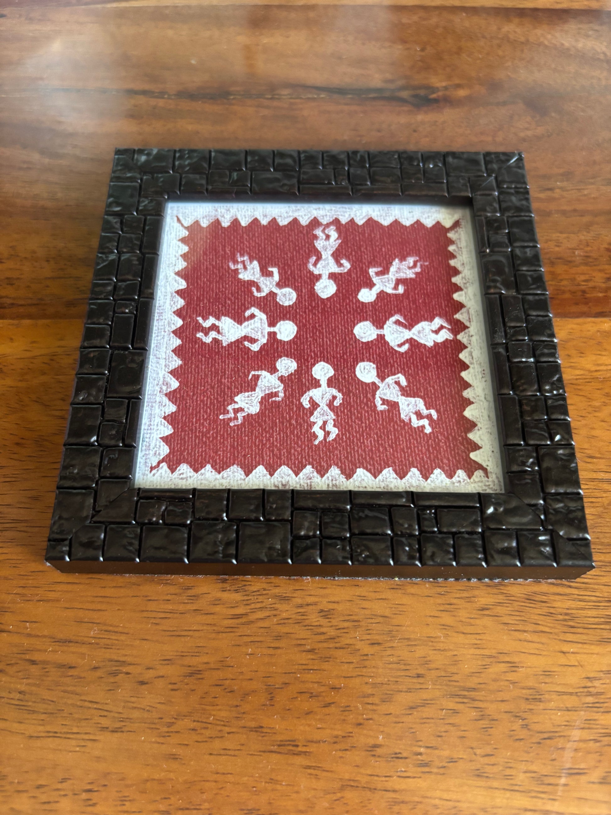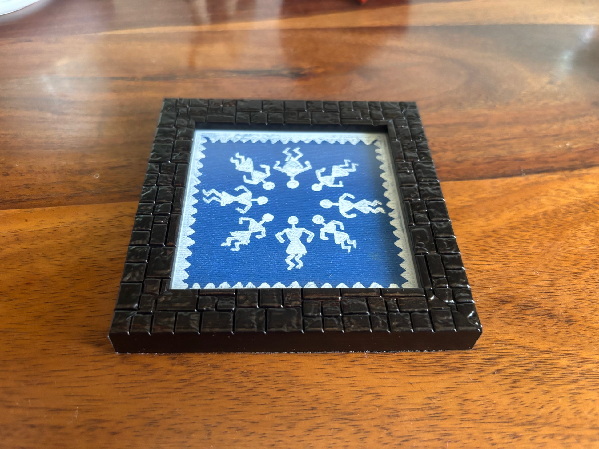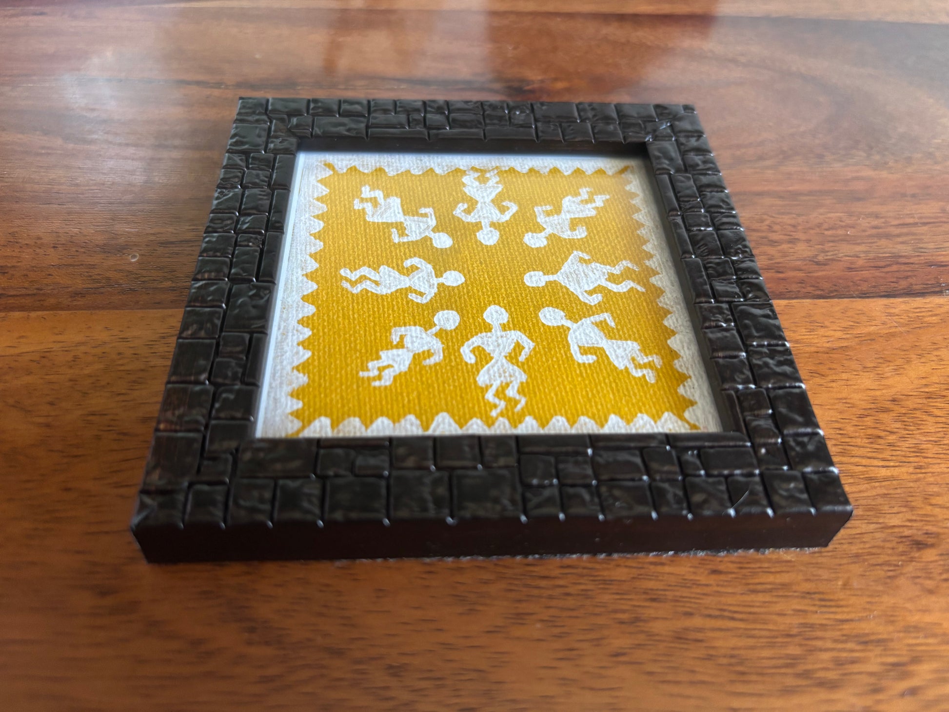 Delight in these cute Warli boys frames which can be used a coaster or a stunning showpiece. Inspired by the famous Warli paintings, these come framed with glass to enhance their beauty while keeping them safe for use as coasters.