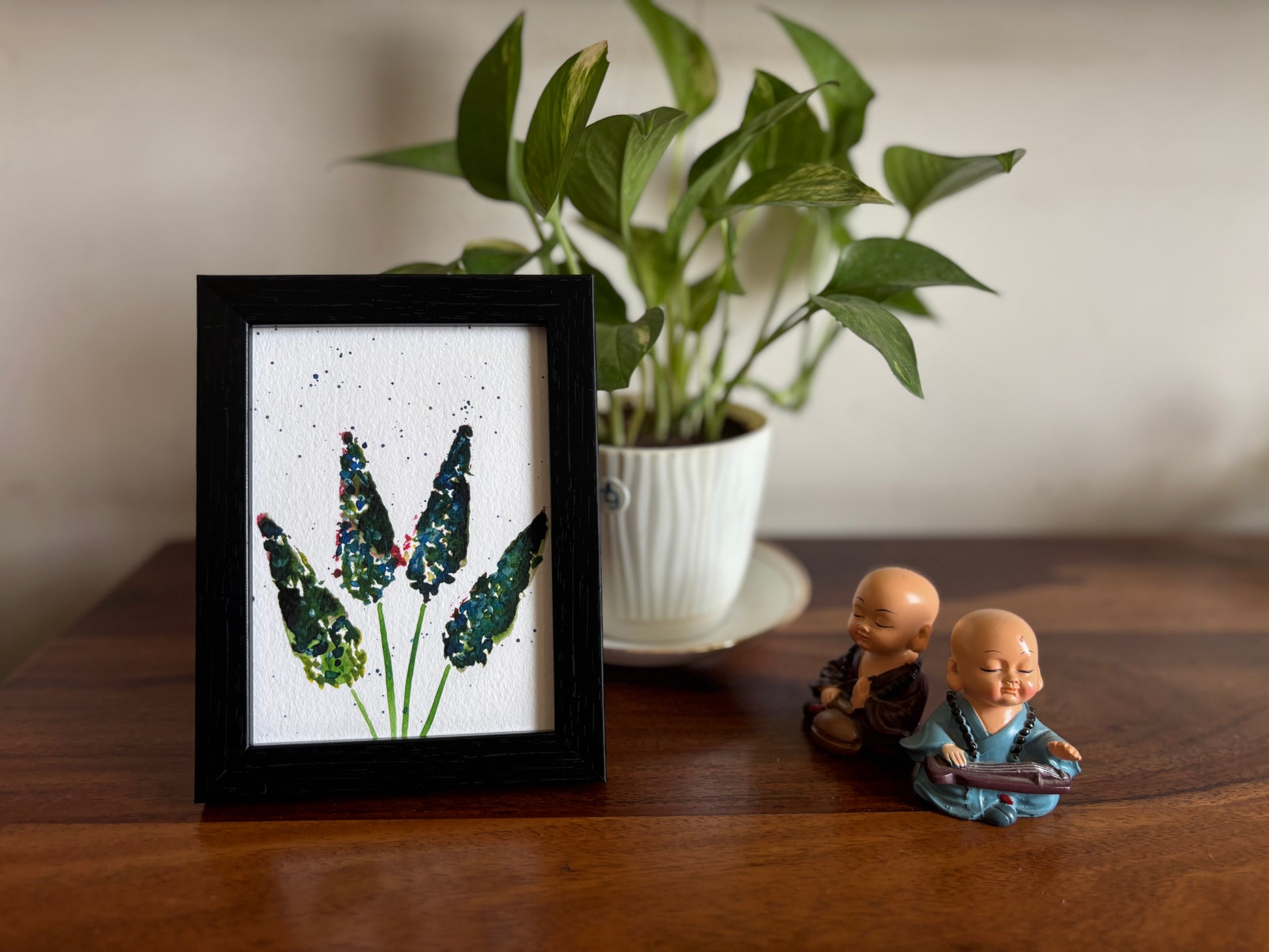 An original watercolour, this art print is available on 310 gsm Hahnemuhle German Etching Textured Fine Art Paper with archival-grade inks to ensure longevity. This artwork comes in a black frame and no glass so that you can enjoy its texture and colours without reflections hampering your view. Perfect for gifting or building your art collection.